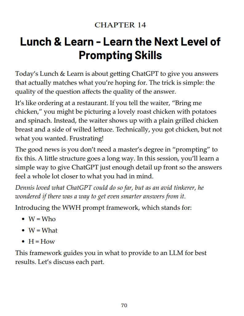This book takes a different approach. It’s written in plain English, free of buzzwords and overly complex explanations, and focused on real-life usefulness. Every concept is tied to a practical reason, with clear examples and demonstrations you can use word for word. The goal is simple: help you start using AI confidently in your daily life right away.